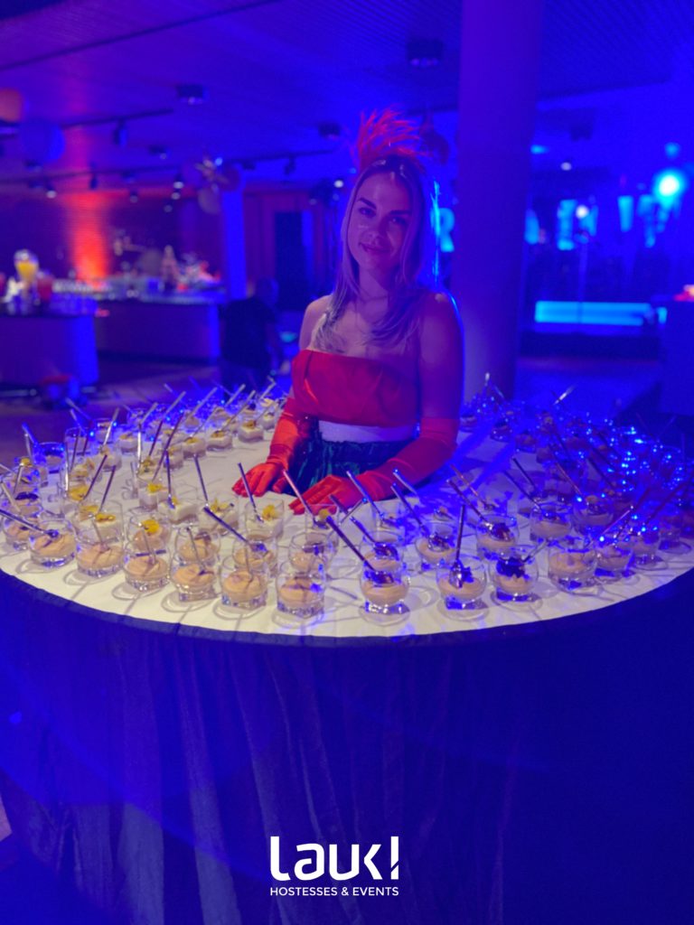 Een uniek event georganiseerd door exclusieve cateraar Hutten Catering met als thema “Colourfull Christmas” ging van start. Na een prachtig en informeel diner in de vorm van foodtrucks was het onze beurt om het dessert te presenteren en op een unieke manier uit te serveren. Onze twee Tafeldames waren volledig gekleed met Tafelkostuums zorgden voor een verrassingseffect voor de aanwezige gasten. Ze waren een lust voor het oog.
